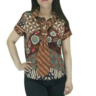 Batik La Atasan Blouse Batik Wanita Lengan Pendek Model Dasi Bahan